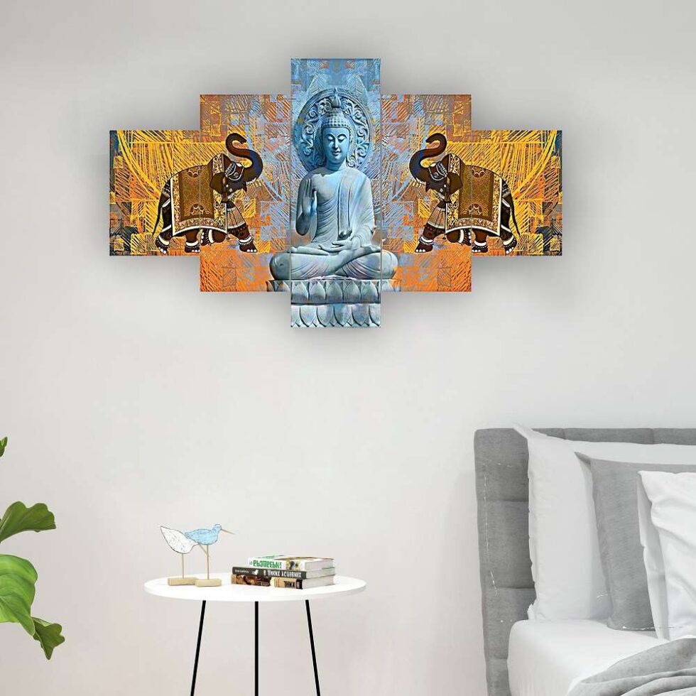 Buddha Set of Five 3D Framed Paintings for Wall Decoration – Ideal for Home, Living Room, and Bedroom (75 x 43 CM)